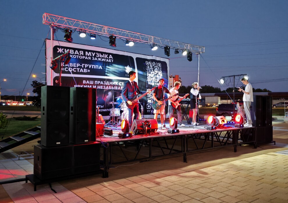 Сцена в формате 6*5 метров. с задней стенкой под банер.
